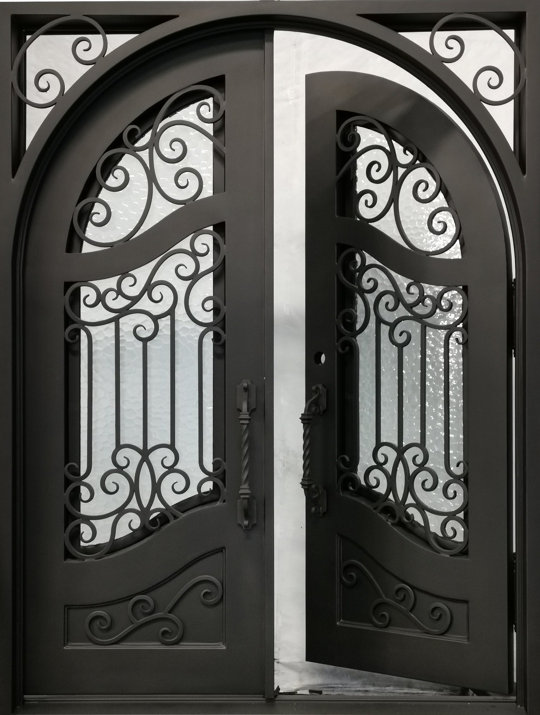 Hico Model Double Front Entry Iron Door With Tempered Low E Clear Glass Matt Black Finish